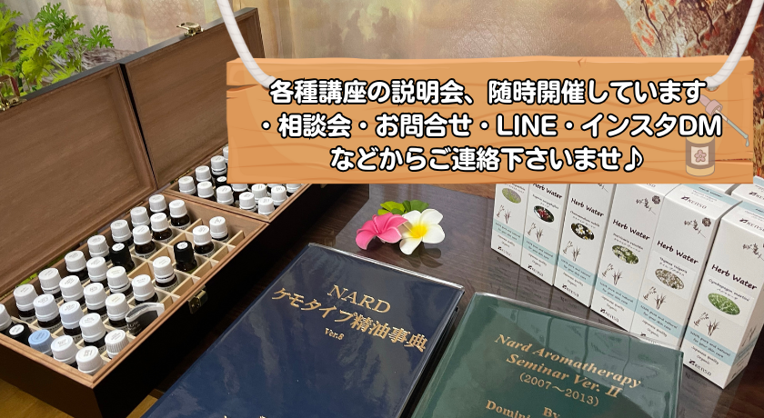 NARD JAPAN認定アロマ・アドバイザー講座(オンライン可) ベイシック講座5コースが学べます。